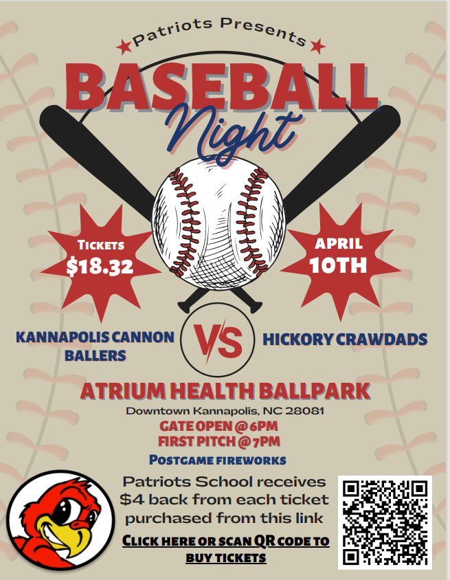 Friday, April 10th join us at a Kannapolis Cannon Ballers Game at 7:00 p.m.Hang out with your friends and family and watch our Chorus sing the national anthem! Here is the link to buy tickets: Patr...