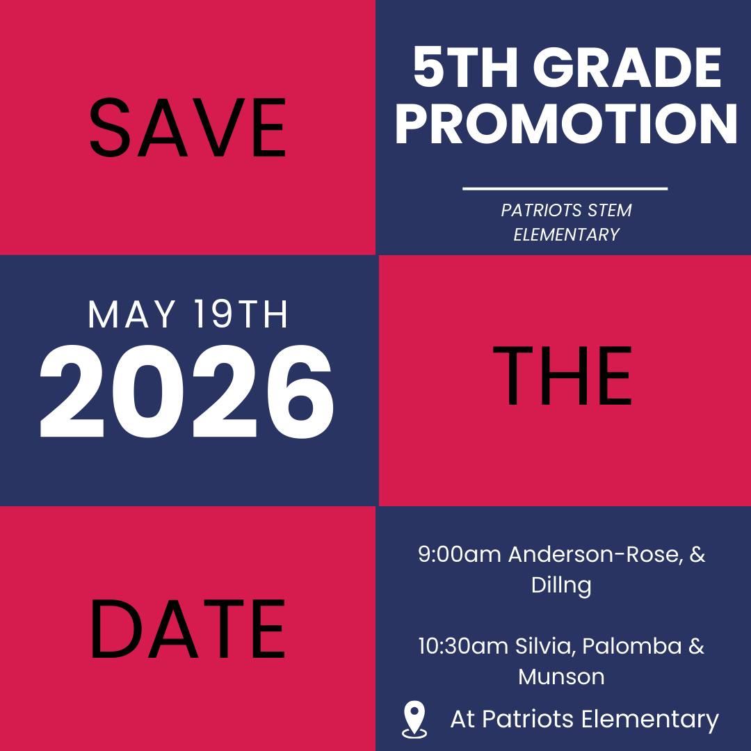Please Save the Date for our 5th Grade Promotion Ceremonies May 19, 2026 at Patriots.